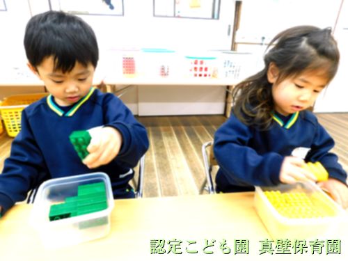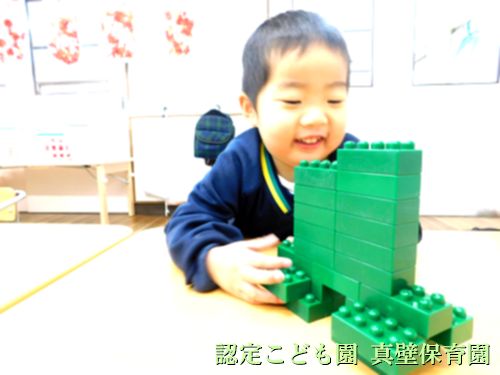 お部屋では、れんげ組さんがブロックで遊んでいます![]()